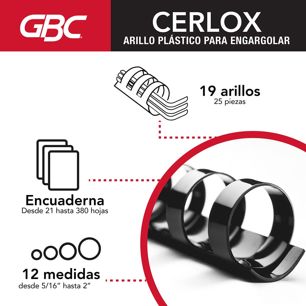 Arillo plástico gbc 5/16'' 21-35 hojas negro c/25 m080131